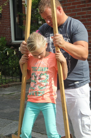 Frank Poll waagt zich ook aan steltlooponderricht. Zo te zien gaat ’t hem goed af!