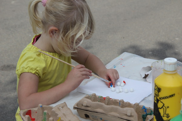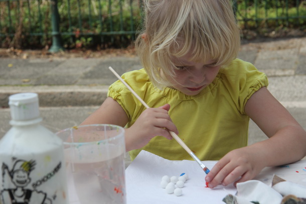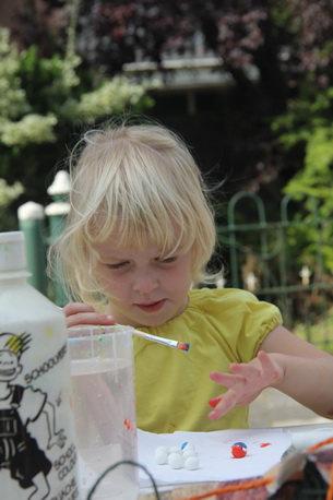 Heel gewetensvol, niet overhaastend, je eigen knikkers verven, een kunstenaar in de dop!
