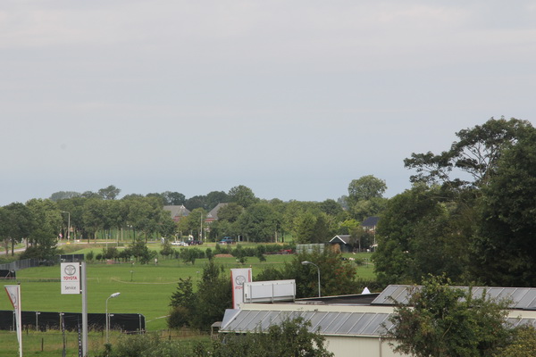 Op de voorgrond de accommodatie van Toyota-garage Pijpker, waar ook het zenuwcentrum van ‘de Slag’ bleek gevestigd. Verderop de groene ruimte waar twee uur later het spektakel nog eens plaats vindt: De Slag bij Noordhorn, met re’enactors uit vele landen en massaal opgekomen publiek, ook op deze zondag….