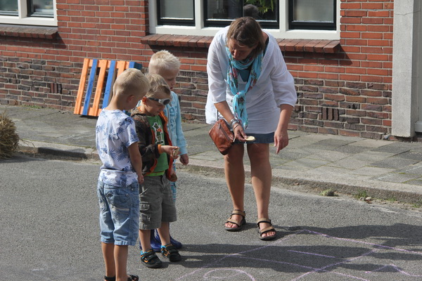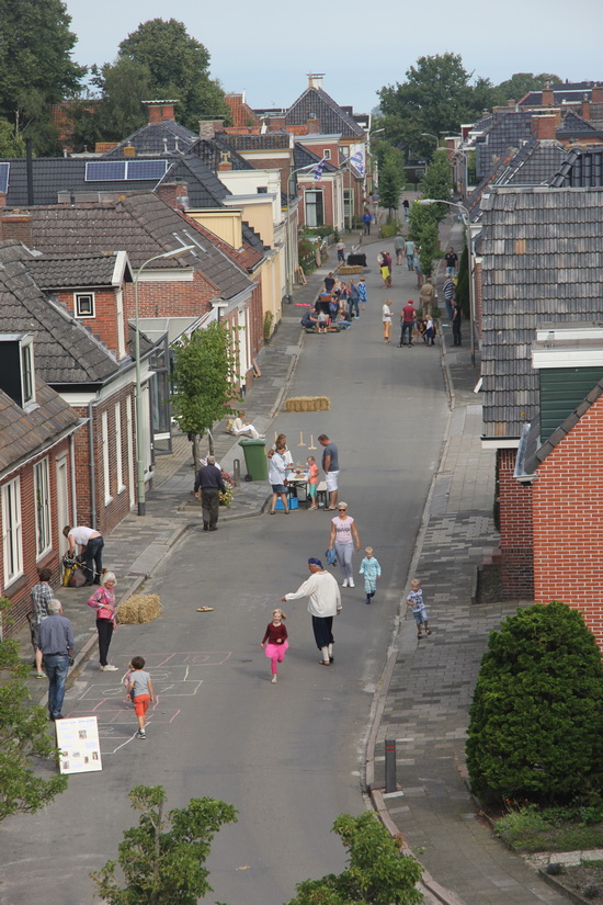 Mooi overzicht van de situatie in de Langestraat, waar heel geleidelijk aan steeds meer kinderen en ouders op een ontspannen manier aan de slag gaan, of alleen maar kijken…