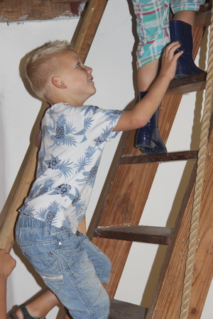 Waar was ik gebleven? Op de omloop van de molen, zondag 30 augustus, kijkend naar het nog lege slagveld bij Achterhof. Naar beneden dan maar, voorzichtig…., en dan wordt het tijd om te kijken hoe het met de oude spelen en spelletjes gaat…