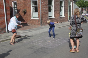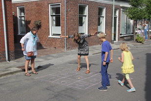 Kijk eens, een van de hinkelvarianten! En dat hinkelen is best moeilijk……