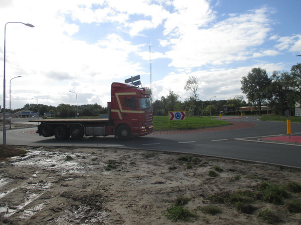 De situatie bij rotonde en tunnel, bekeken vanaf het kruispunt met de Schippersstraat. Een immense zandvlakte, keurig afgevlakt. Een enkele fietser die een spoor wilde achterlaten…. En het schelpenpad dat opnieuw aan renovatie toe is…..