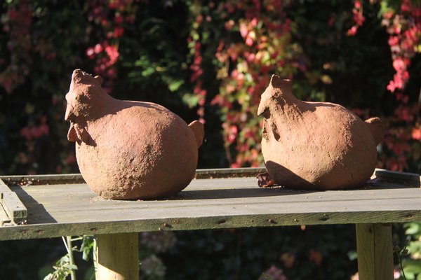 De kleikippen van Gé, die al geruime tijd de voederplank bezet houden, baden zich in de oktoberzon….