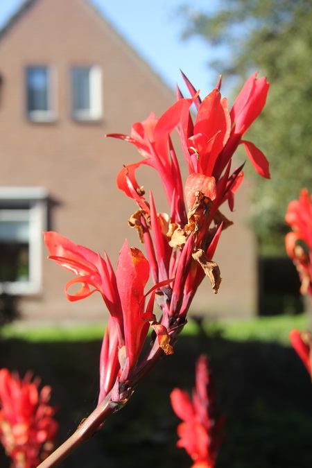 Van west naar oost, huizen en kastanjes aan het Van Starkenborghkanaal Noord… Opvallend dat van de vele kastanjes er maar twee vruchten dragen…..