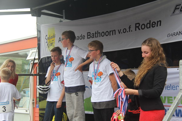 De tweeling IJbema op 1 en 3, een Rozema (Ton?) op 2… Kissmiss Kirsten staat al met de volgende medailles klaar.