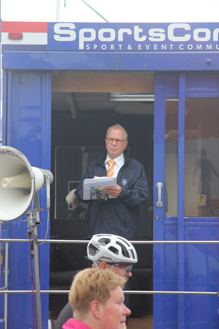 De wedstrijdleider in de jurybus staat al klaar voor het volgende onderdeel, de Heren Amateurs en Sportklasse….