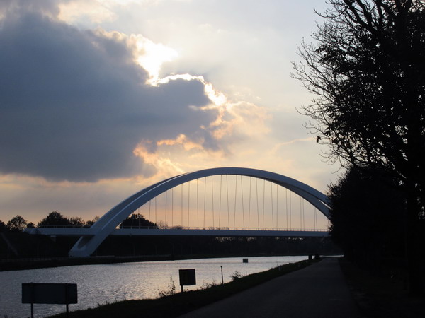 Het mooie van de nieuwe spoorbrug is ook dat je de brug al van ver ziet, komend vanaf Pasop.