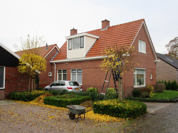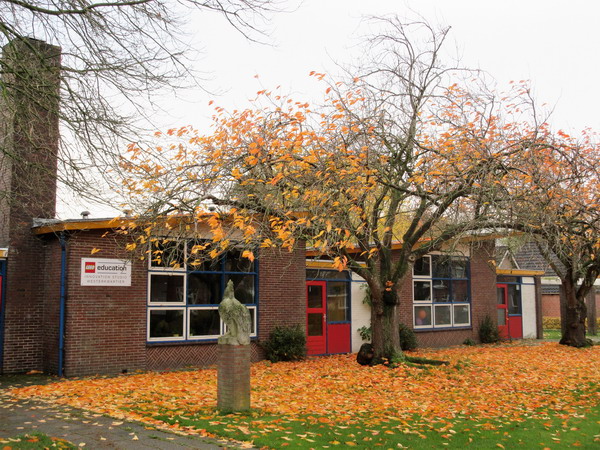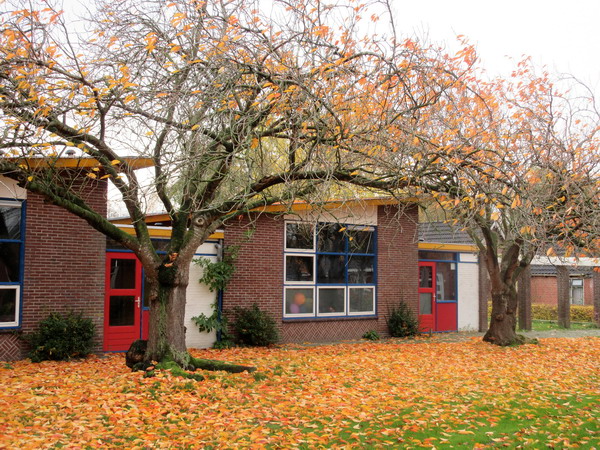 En al weer liggen er meer bladeren op de grond bij de voormalige school aan de Oosterweg….