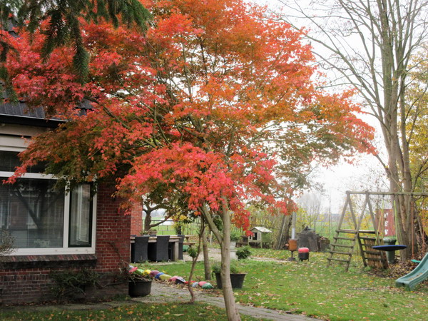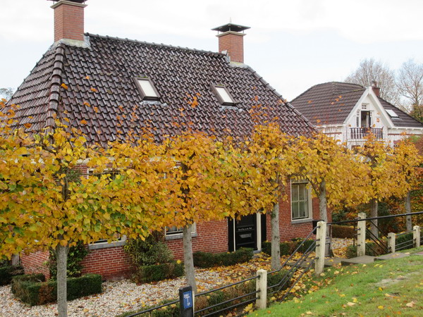 Boom in herfsttooi op de hoek van de woonboerderij van de fam. Van Gosliga aan de Oosterweg. Vroegere woonstee van mevr. Holtman.
