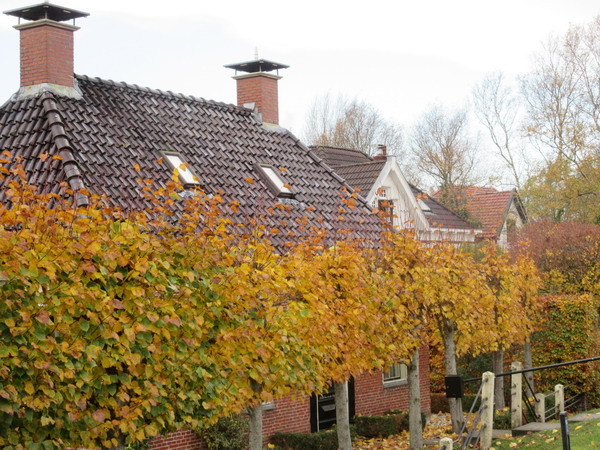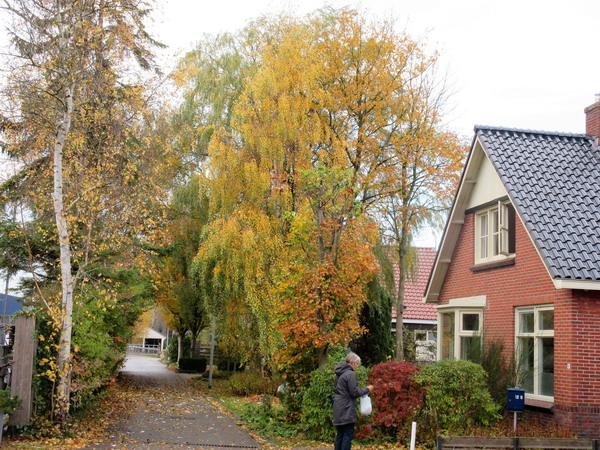 Vallende bladeren aan de Oosterweg waar Melis Burgler snoeiwerk verricht aan de bolboompjes van de fam. Westra.