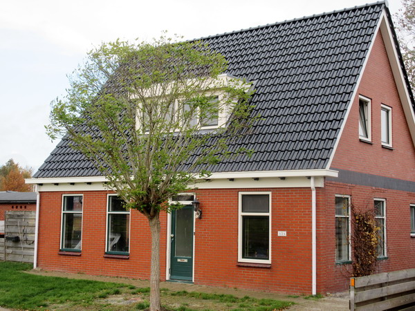 De gerenoveerde woning van Edwin Top en Lusanne Burgler aan het eind van de Badweg. Rechts de auto van buurman Piet Bos.