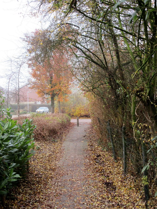 De herfstkleuren aan het noordelijke eind van het tegelpad dat de Nieuwstraat verbindt met de Verlengde Oosterweg.