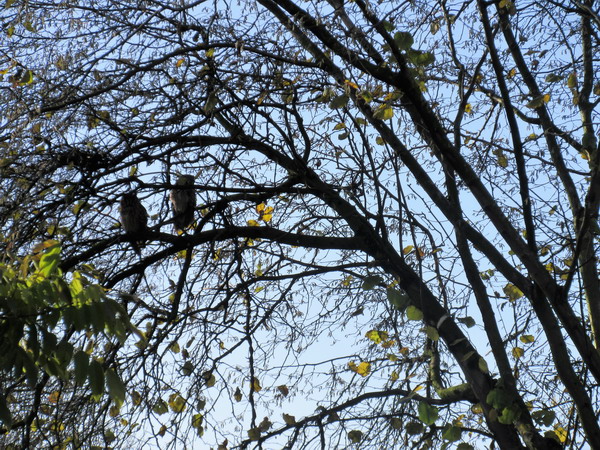 Vanuit het geboomte van de buren aan de zuidkant houden twee ransuilen mij nauwlettend in het oog….