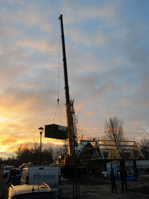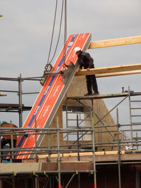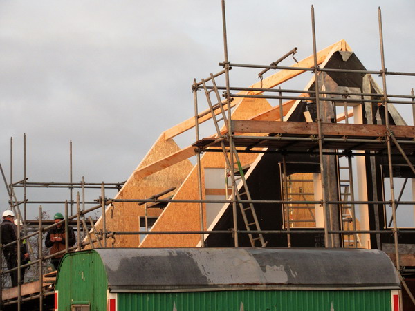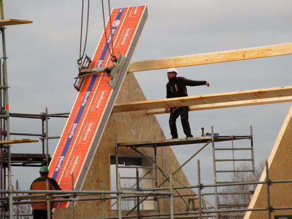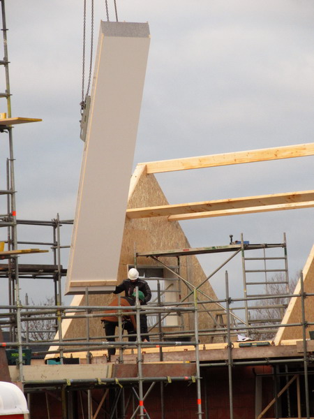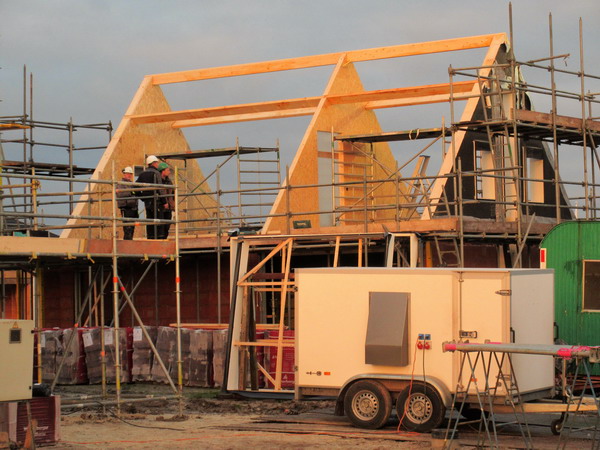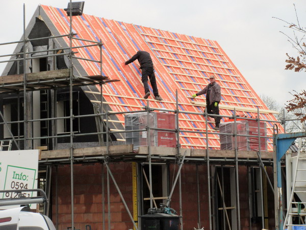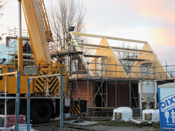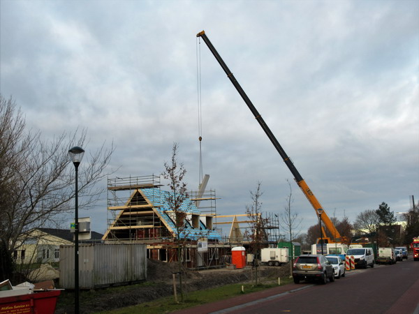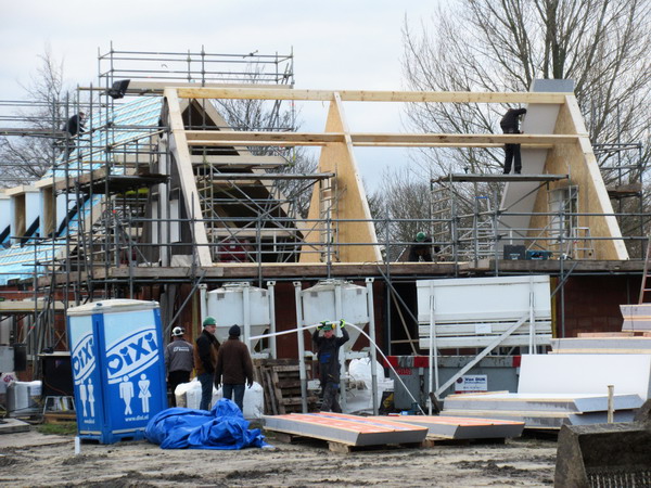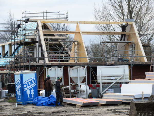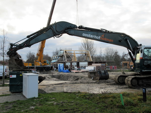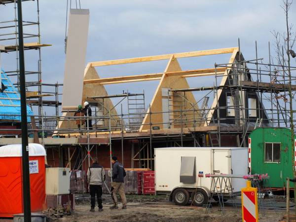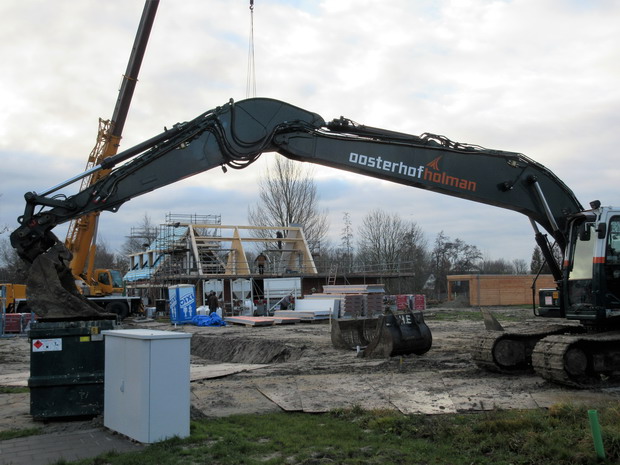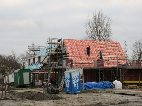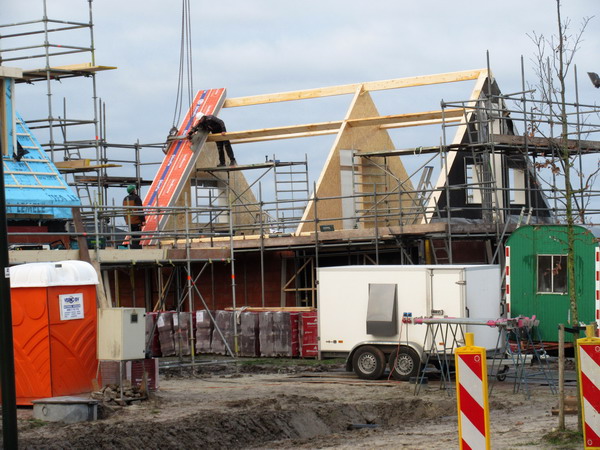De nieuwbouw van twee woningen aan de westzijde van de Rijksstraatweg vordert gestaag. Daarmee zijn de kavels C en D bezet. De kopers van de kavels A en B hebben blijkbaar minder haast….