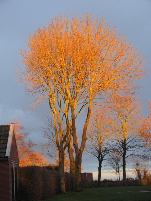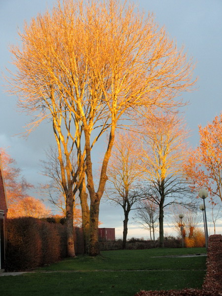 Ons routinerondje volgend, wandelend, bracht ons aan de Rijksstraatweg langs een dode poes. Verkeersslachtoffer? (Niet het eerste en helaas naar alle waarschijnlijkheid ook niet het laatste….)R.I.P.Soms heb je geluk, nog minder vaak GELUK, zoals hier. Dit natuurlijke licht is hemels, daar kun je een moment naar kijken, en nog een, en dan is het al weer verdwenen…. Dit vind ik echt bijzonder! (Nee, ik ben niet zo van de volgehangen kerstbomen, Kerstgroeten met rendieren en arresleebelletjes en overdadige eindejaarsverlichting. Ieder zijn meug….)Langestraat Zuid, oostzijde, in bijhzondere belichting. Winters, dat wel, maar niet zoals we het clichématig in gedachten hebben….