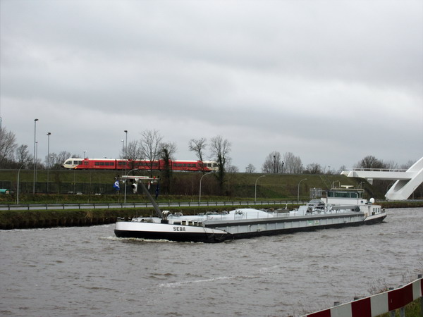 Opvallend huldeblijk voor een jarige opa die 65 is geworden, aan de Industrieweg op de hoek bij Be-Jo….Overigens is opa blijkbaar meer dan één dag jarig, want het grasbalenmanneke met stroarmen stond er vandaag nog! Binnenvaarder SEBA (Rhenen) is de spoorbrug gepasseerd en nadert de tafelbrug. Op de achtergrond rijdt een Arrivatrein van Leeuwarden richting Groningen.Wederom een kastanje geveld aan het Van Starkenborghkanaal. Deze krasse knar voor het huis van de Datema’s zal ook zien geweest en dan is euthanasie snel geregeld. Mooie portie hout… Brandhout? Of zit er ook nog timmerhout bij?De SEBA nadert de tafelbrug. Mooie binnenvaarder!