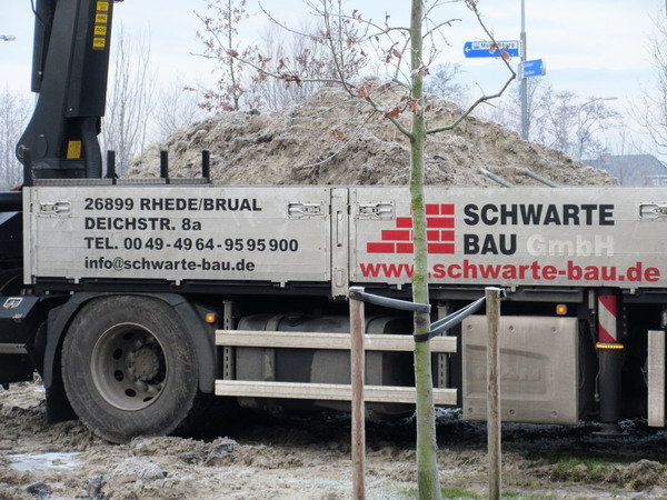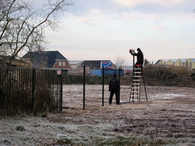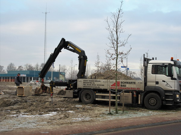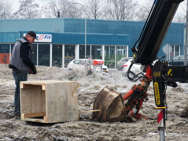 Toch een kiekje van de maansverduistering! De maan komt al weer te voorschijn, de schaduw van de aarde schuift er langzaam maar zeker vanaf.Bij kavel A (fam. Kamminga) is een grijper actief, met afstandbediening…SCHWARTE BAU, de naam komt me bekend voor…. Al eerder werkzaam in Noordhorn?Er wordt zo te zien een voorziening voorbereid, koud klusje op deze winterse maandag….Er wordt een nieuw hek geplaatst bij de lege kavel die ontstond na de afbraak van het woonhuis van de fam. Hekkema. Gemeentegrond, er zal wel een aansluiting bij het terrein van Openbare Werken komen.