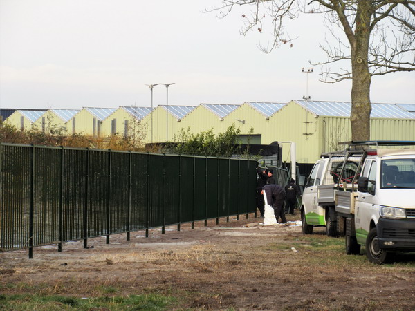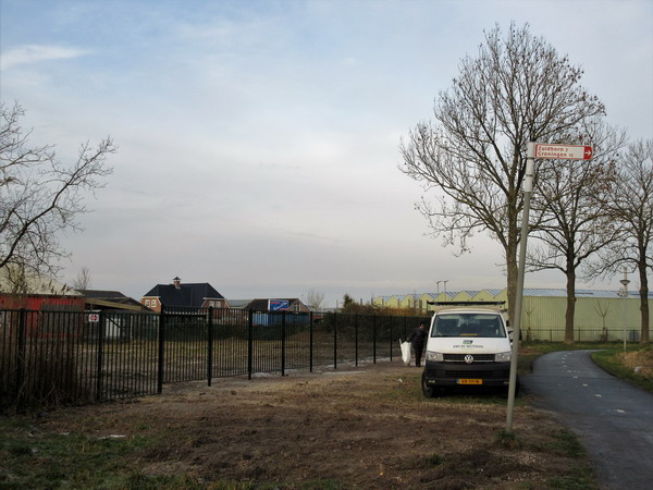 Het nieuwe hek in het verlengde van het bedrijfsterrein van Openbare Werken nadert de voltooiing.Hier stond het huis van de fam. Hekkema dat na de voltooiing van de N355-verlegging (met rotonde en tunnel) veel overlast kreeg van water en koplampen… De woning en de grond kwamen in gemeentebezit. Het huis werd afgebroken.Het terrein zal denk ik worden samengevoegd met het naastgelegen bedrijfsterrein van de gemeente.Foto vanaf de noordoostzijde….