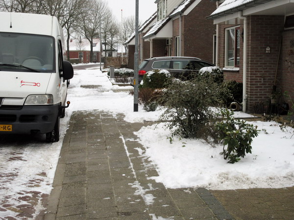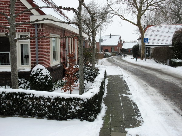 Als het heeft gesneeuwd, is het altijd maar weer afwachten of er geruimd wordt… Daar we eigenlijk elke dag zouden moeten lopen, minstens één keer een half uur, is de toestand van de paden en de wegen voor ons van groot belang. Niet overal wordt het voetpad vrij gemaakt. Hier wel, aan de Langestraat Noord!Even verderop aan dezelfde Langestraat Noord is er nog een sneeuwvrij gedeelte!Decoratief en niet noodzakelijk te bewandelen: De Oude Weg aan de westkant van de N355. Het fietspad langs de N355 is wel schoon en veilig.Karakteristiek deel van het dorpsprofiel aan de westkant, met toren en woonstee Achterhof.De woonboerderij van Achterhof wordt gerenoveerd. Nieuwe dakpannen, dakkapellen, dakramen….Een verbetering vergeleken bij voorgaande winters: Dit gedeelte van de Mokkenburgweg tussen N355 en Transportweg is nu wel sneeuwvrij!Aangeland in de Oosterweg waar sommigen het voetpad sneeuwvrij hebben gemaakt, op sommige plekken…..De haan van Willem Valk bij de voormalige Molshoop lijdt kou tussen afvalcontainers en een groen uitgeslagen beklede muur…..Ook hier is de sneeuw grotendeels weggewerkt, het vroegere woonhuis van o.a. Bansema, Vennema, Helmus. Ooit was er ook een winkeltje in gevestigd….Ook aan de Oosterweg, bij de Cruimings, het vroegere woonhuis van aannemer/timmerman Willem Bargerbos.Tegenover de sportzaal, het woonhuis van de fam. Wobbes, vroeger Drenth, gebouwd door aannemer/timmerman Hiemstra.Nieuwstraat, zuidkant. Geen trottoir, maar de zijstrook is wel bewandelbaar gemaakt. De schuur was vroeger een droogschuur van bakkerij Wildeman en zijn voorgangers. Rechts een deel van het huis dat Cees de Boer liet bouwen, nu huize Huistra.