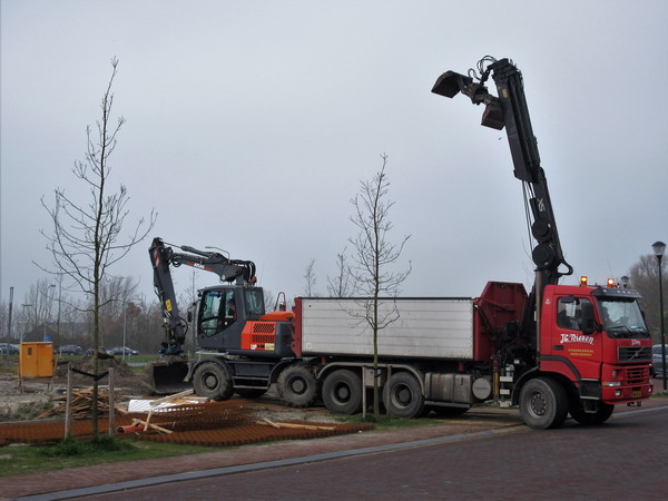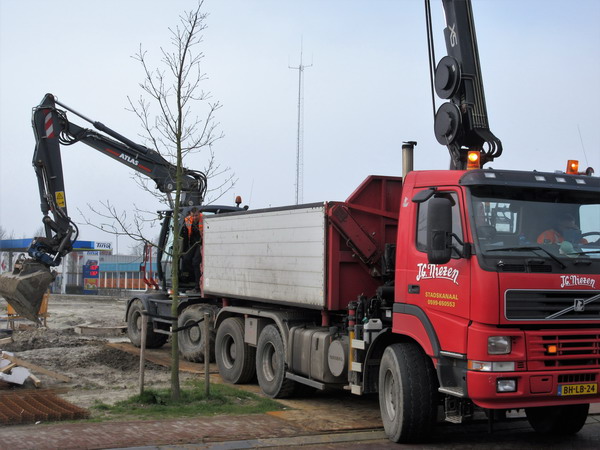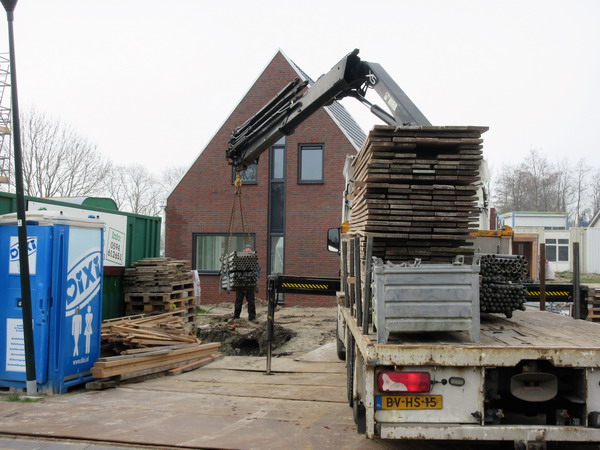 De nieuwe woning van Bert en Engly Hummel aan de Rijksstraatweg (westzijde), kavel C, is uit de steigers.Het steigermateriaal wordt opgehaald, komt er meer zicht op het nieuwe huis.Ook werkzaamheden bij kavel A, waar de nieuwe woning vcan de fam. Kamminga wordt gebouwd. Hier wordt overtollige aarde afgevoerd. Door de drukte op de bouwmarkt is er enige vertraging, de woning zal pas eind april/begin mei worden opgebouwd.