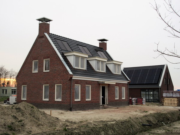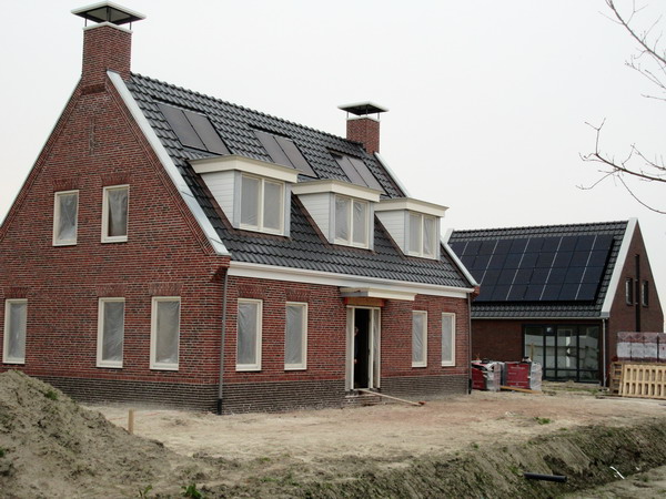 De nieuwe woning van de fam. Wieldraaijer aan de westkant van de Rijksstraatweg tussen dorp en tafelbrug. Ontdaan van de steigers….Prachtige woning, rechts het nieuwe woonpand van Bert en Engly Hummel. Heel anders, maar ook heel mooi!Met zelfwerkzaamheid worden volgende stappen genomen. Er komt o.a. nog een schuur achter het huis in dezelfde bouwstijl.