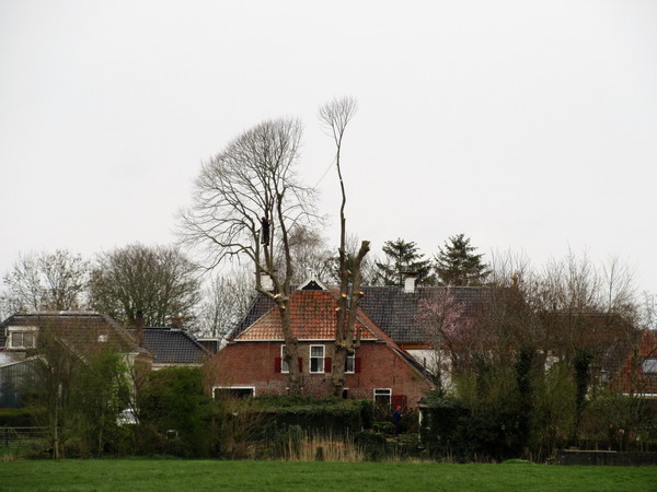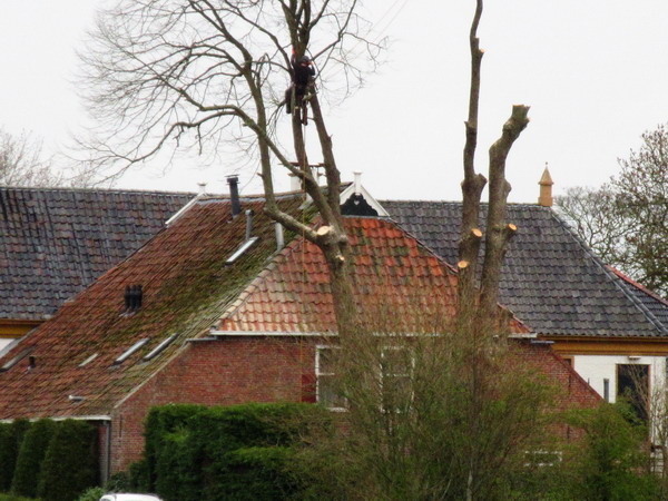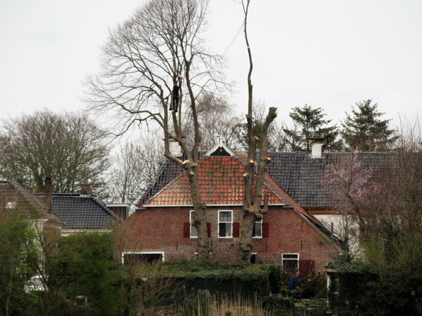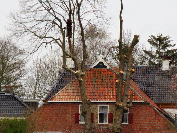 Ik zie dat de oude, hoge bomen achter “De Gouden Leeuw” danig worden bewerkt. Het zal toch niet dat ze helemaal worden verwijderd….