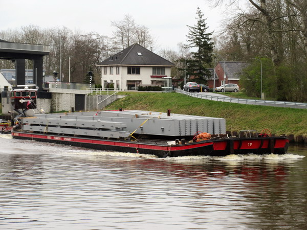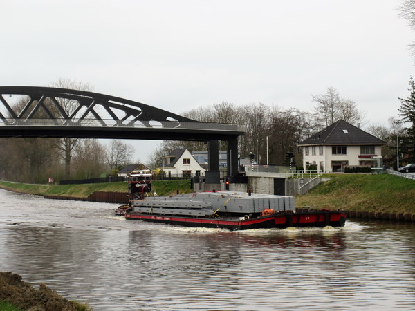 Lopend langs het Van Starkenborghkanaal zie ik een bijzonder transport naderen….