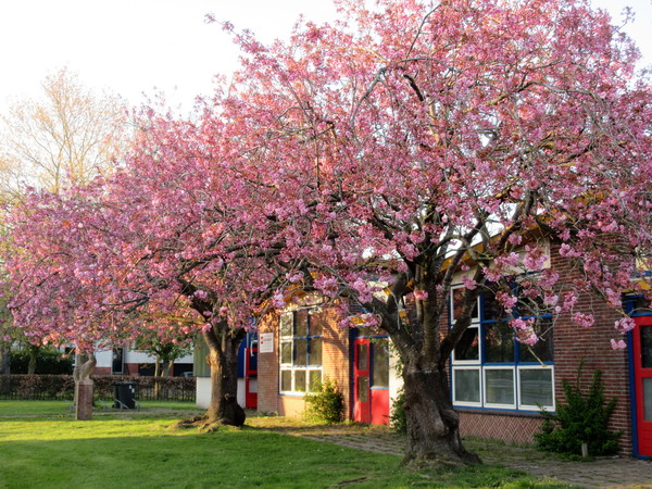 Toch al een vroege plakker op het verder nog schone verkiezingsbord bij de keerlus van de Langestraat Noord. GroenLinks is de eerste, wie volgen?!Prachtig gezicht, nog steeds, de twee bloeiende Japanse kersen bij de voormalige school aan de Oosterweg, scholgebouw en prunussen zijn evenoud, 63 jaar….