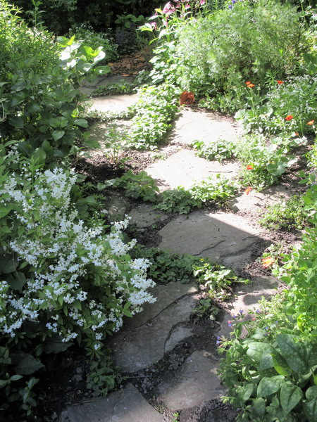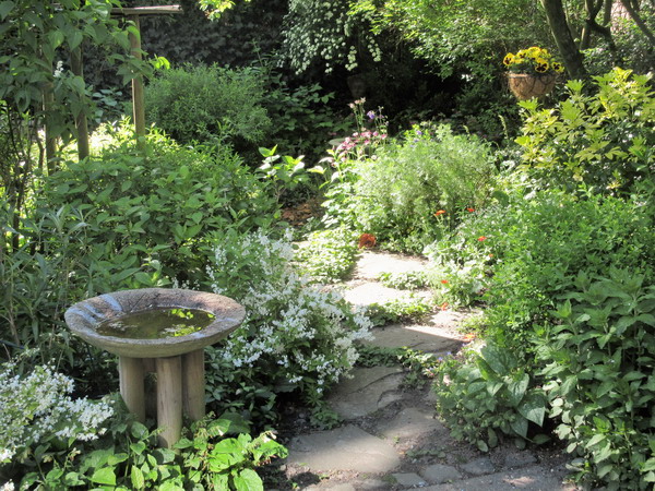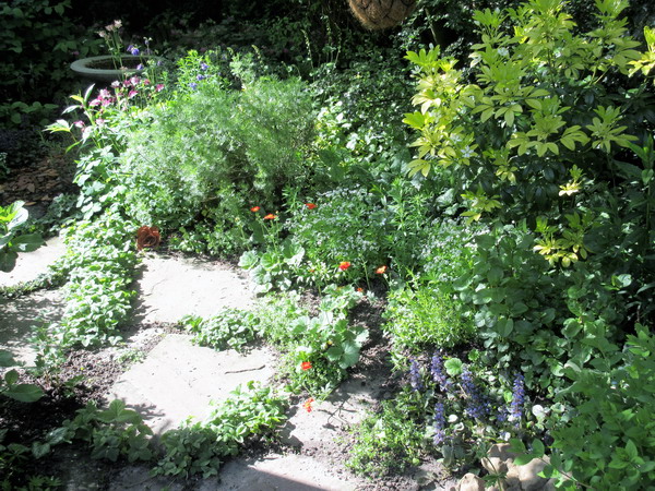 Onze achtertuin op een zomerse dag in mei, een overvloed aan zonlicht.