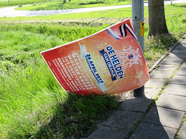 Nog zo’n straatposter die ‘over tijd’ is…. (Deze is inmiddels wel verwijderd. CORRECTIE: Het vale affiche staat er helaas nog steeds bij de viertonde…..).
