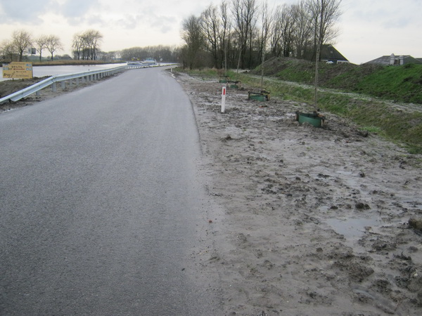De bouw loopt voorspoedig. De voor deze week geplande activiteiten zijn afgerond. Door het fantastische weer kon er zelfs extra grond worden getransporteerd. Deze grond is op het nieuwe tracé van de N355 gebruikt om de gedempte watergangen te voorzien van voorbelasting. Voorbelasting houdt in dat er met machines een hoeveelheid zandgrond wordt aangebracht. Zo wordt extra gewicht op de kruisingen van de watergang met de toekomstige weg aangebracht en wordt maximale zetting in de ondergrond gewaarborgd. Zetting is het proces waarbij grond wordt belast en daardoor samengedrukt. Water en lucht worden dan uit de grond geperst.