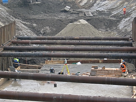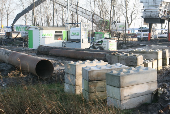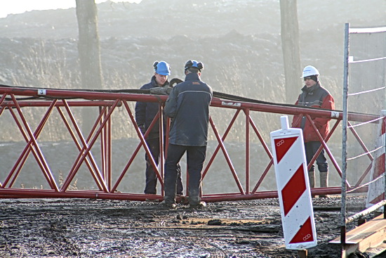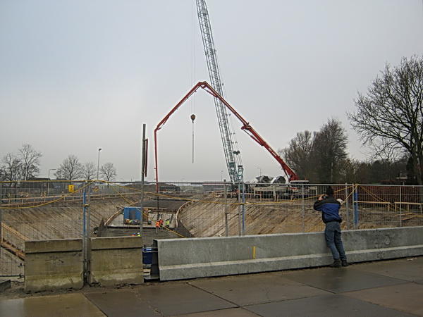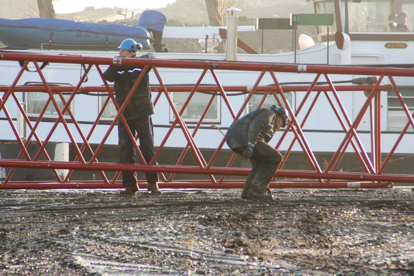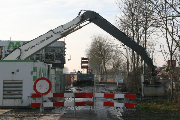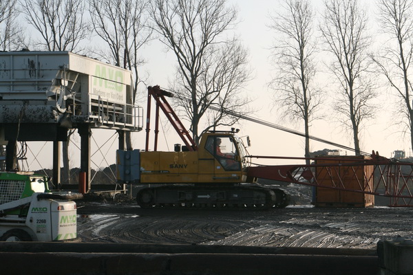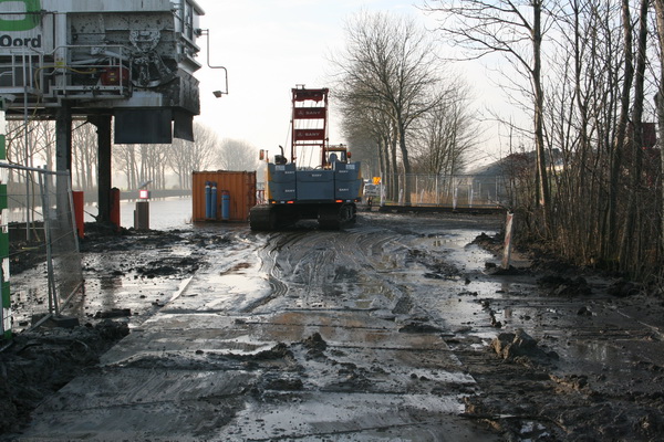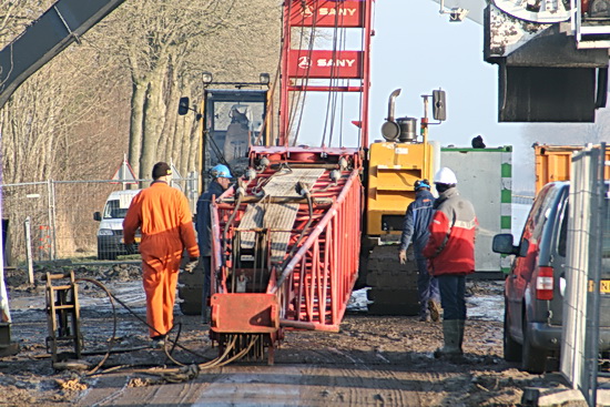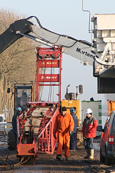 Terwijl de kraanmachinist het heien “even” uit zijn hoofd heeft gezet en zich bezig houdt met onduidelijk gemanipuleer, geniet ik van de fraaie decembernamiddaglucht, in tegenlicht….