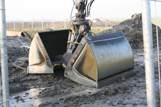 Hier gaat het nog van klits-klats-klets! De Hitachi-grijper maakt de sloot weer functionerend!
