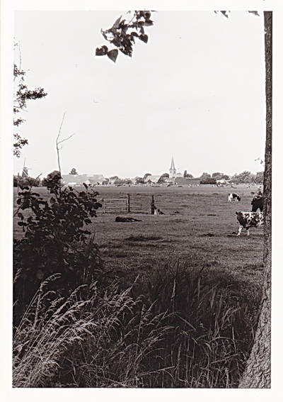 Op de achtergrond het dubbele Kooi-huis, door (groot)vader Reint gebouwd in 1936. Rechts geboorte- en woonhuis Frits Kooi.