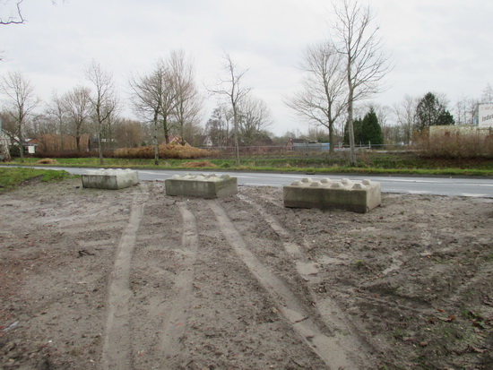 Deze doorgang van N355 naar parallelweg/Langestraat (vice versa) is versperd met betonblokken. Wordt het toch wat moeilijker om met je auto overheen te ‘scheuren’….. Geen nood, gaan we nu met veel bravoure de bocht door richting Langestraat, en passant met de wielen over een deel van het tunnelterrein aan de noordwestkant. Lachen!! Wat een gevoel voor humor hebben sommige automobilisten vandaag de dag….