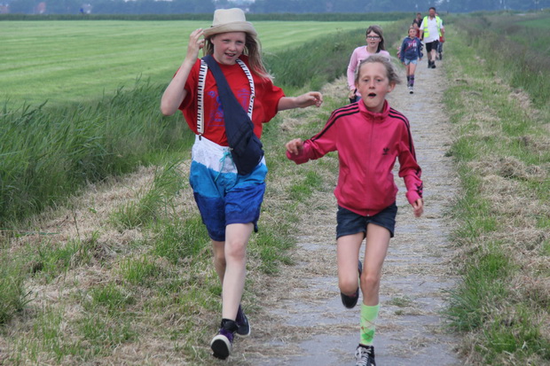 Vier energieke Burgler broeklopers tegen vier Bit..es” die de broek aan hebben… Teamlid Femke geeft nog enige laatste instructies, stille kracht Hille Dijck helpt bij het verkleinen van de afzakkansen…