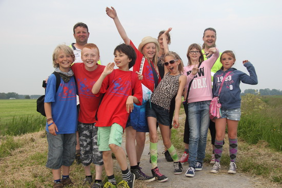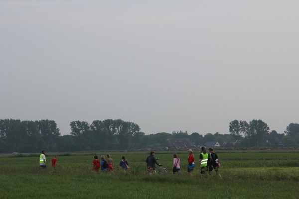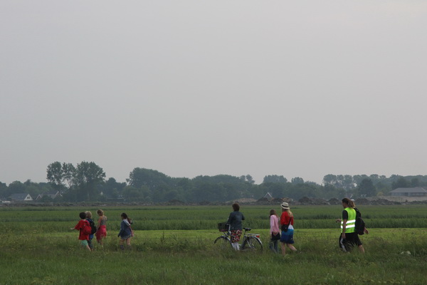 Links zijn teamleden van de Jongerengroep het terrein aan het verkennen. Enkele slechte plekken zijn nog niet bekomen van de donderdagse regen…. Rechts een deel van de jeugdige Kalf-ploeg! Aanstormende talenten!